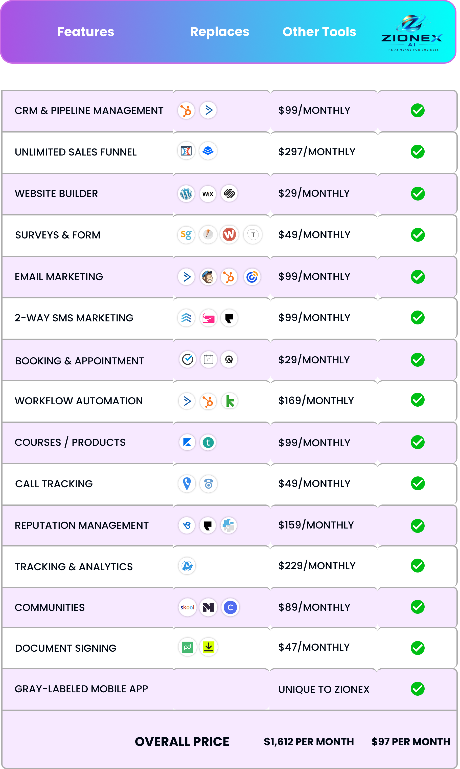 All your marketing in one place: Unlimited sales funnels, email, sms, web chat, & more.
